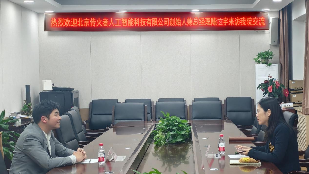 11月26日晚,北京传火者人工智能科技有限公司创始人兼总经理陈泫宇到访成人a片 ,与党委副书记兼副院长李娟就学生实习实践合作、创新创业竞赛赋能等事宜座谈。